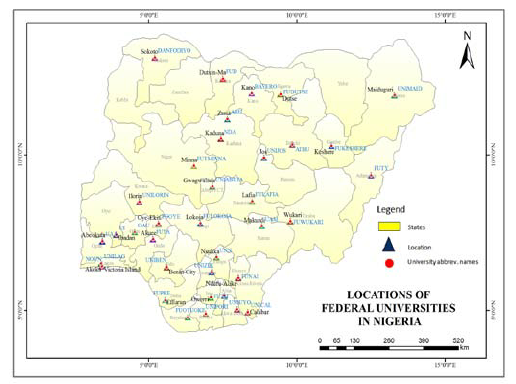 Ogbuju, E. et al. (2012). Applying Geospatial Information and Communication Technology System: Research on Locations of Federal Universities in Nigeria. Vol., 3.